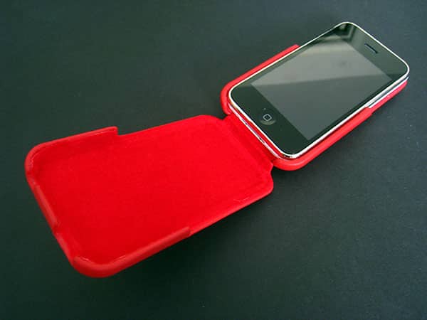 Like other flip-style cases, the U-Suit Folio Premium seals off almost every feature of the iPhone 3G when closed, a design that we really don’t like for practical day-to-day use of the device, but respect in the sense that it protects so much of the plastic body from possible harm. Thus, there are headphone, Sleep/Wake button and camera holes, but none for the speakerphone features, Dock Connector, ringer switch or volume buttons, which all need to be used only when the case is opened.