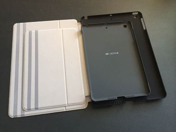The tablet cases are pretty standard folios with hard plastic shells. Their covers are one color, with two strips running down the right edge.