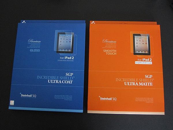 The idea that most case manufacturers work with is a simple one: keep the iPad 2 thin, light, and beautiful while still protecting it. Following that logic, the best case would be one that does not add bulk or weight, maintains Apple’s design aesthetic, and keeps the device safe from bumps and scratches — that naturally leads to something like a thin film. That is what United SGP has released with its new Incredible Shield Ultra Coat and Ultra Matte for iPad 2 ($34 each). Offering almost total body coverage, these sets include a plastic sheet to adhere to the back of the iPad 2 — glossy for the ultra coat, matte for the matte — and both come with a crystal clear screen protector. The screen protector is the standard dry installation style with static cling rather than classic adhesive, while the pieces for the back are applied with a moisture-aided adhesive. To help with the installation, the company packs in a vial of application solution, LCD cleaner spray, a silicon squeegee, and a microfiber cloth. Notably, there are two different models for each finish: one for the Wi-Fi and CDMA versions of the iPad 2, and another for the GSM version, differing only in offering a cut-out for the GSM version’s SIM card slot.