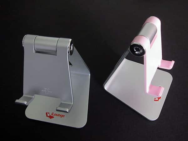 The shift in iPhone holder design enables United SGP to offer even more colors this time out, binding the holder and leg together with chromed plastic side pins.