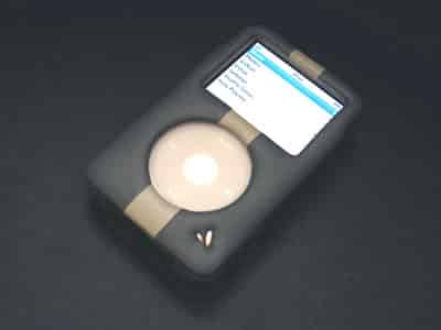 This new version of Vaja’s earlier premium leather iVod video case now lets you choose two colors from a total of 33, one of which will be used for the majority of the case, and the second for a racing stripe that runs down the case’s center, interrupted by holes for Dock Connector and top-of-iPod access. As with all of the iVod cases, Vaja’s leather here is stunningly nice – puffed and richly colored – and the SP includes both an integrated clear screen protector and matte-finished Click Wheel protector for complete frontal iPod protection. A belt clip and personalization are optional.