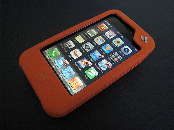 We have mixed feelings about this version of iVolution for one major reason: as we noted last year, “iVolution continues to get more expensive every year, even as it falls in protectiveness,” and that trend has unfortunately continued. Even more of the iPhone’s glass face is exposed than last year, with an odd angled front cover that was designed solely to make room for the Vaja logo on one side of the 3G’s ear speaker. Last year’s Home button protector was just a little too recessed, and this year’s looks a little too puffed out with a boring, slightly off-center icon, even if it feels more responsive.