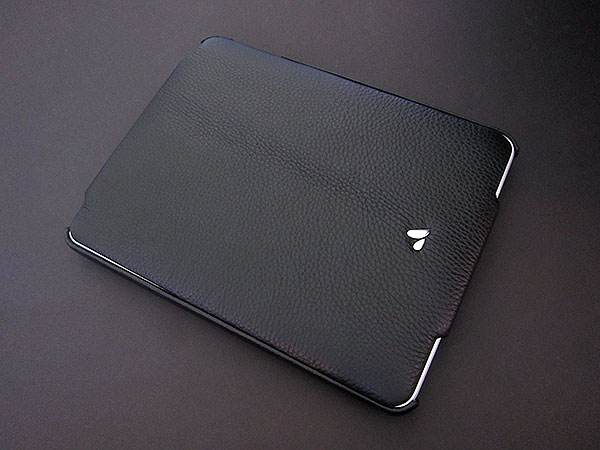 Vaja’s second iPad case to debut is iVolution Top ($150), a two-piece, padded leather hardshell that is customized in your choice of inner and outer colors. Silver logo-accented floater leather is used for the outside, with 22 selectable color choices, and a smoother, less grainy leather in your choice of 31 colors is found on the inside, branded with embossed Vaja word logos.