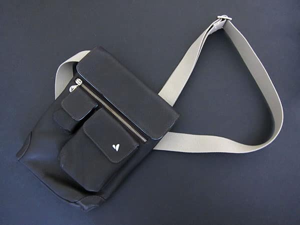 This particular Vaja creation is shown in promotional images in a jet black color scheme, but is currently available only in a “brownie and birch” two-tone brown with light blue accents. The shoulder strap is made from a durable fabric with metal O- and adjustment rings.