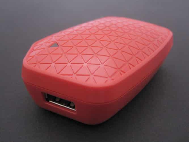 Instead of the traditional square, Powerslayer has a more interesting, organic shape. It’s something like a rounded rectangle, although a segment juts out a bit at the bottom. It’s 3” tall at its tallest point, 1.95” wide, and just over 1” thick. We can’t help but be reminded of a turtle shell. Coming in one of four colors, the plastic is mostly smooth, although the outer face is covered in a pattern of small, slightly raised triangles. The wall prongs on the back fold up when not in use, and the single USB port is located on the bottom edge.