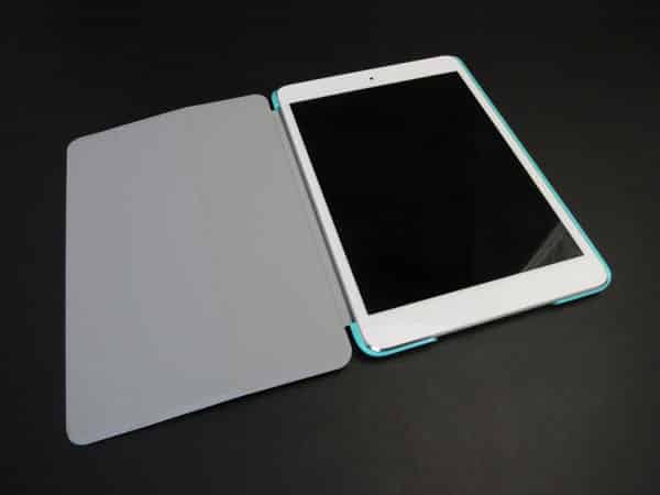 We noticed some slight curling around both the top and bottom corners on the right side, but were otherwise satisfied with the quality. Like the Smart Cover, this lid can be folded into a triangle and used as a stand for viewing or typing. It relies on the weight of the iPad mini to hold its position, rather than magnets, which isn’t a problem if you set it up properly. While there are in fact magnets inside, they’re only used to lock and unlock the tablet’s display, as well as to hold the lid closed without the need for a tab.