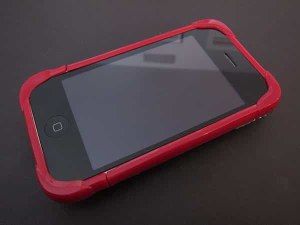 Though we’re not totally impressed by the bonding layer between the shell and the case, achieved with some obvious glue, they stay together well enough that there shouldn’t be a problem during normal use; an included mirrored screen protector goes onto the front of your iPhone 3G or 3GS to provide substantial face coverage.