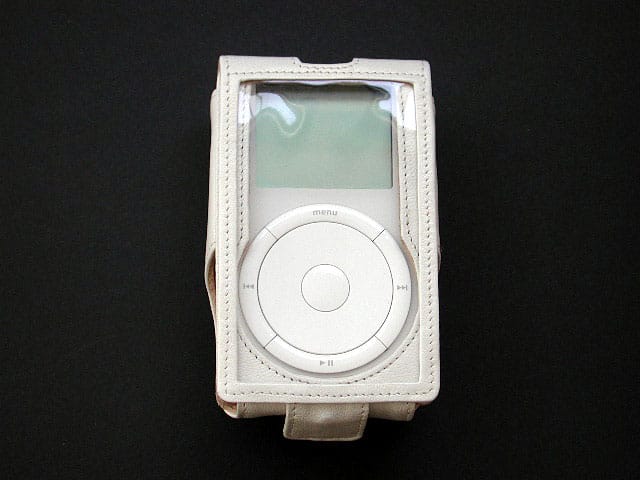 Inserting the iPod into the case, I was impressed by how snugly (but not tightly) the case fit, without obscuring any of the buttons, scroll wheel, or screen. A magnetized snap easily secures the vinyl window over the iPod’s face. The large cut-out at the top of the case exposes just the headphone jack, and thoughtfully allows headphones to remain plugged in when the user opens the snap to adjust song or volume settings.