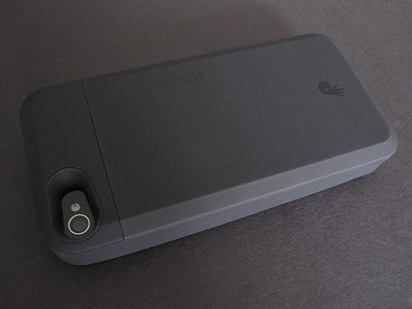 Unlike most battery packs, PowerSkin isn’t a two-piece slider-style case. Instead, it’s one unit with a hard plastic back and pliable silicone rubber edges along the left, right, and top. Those edges have enough give that inserting and removing the iPhone 4 is very easy. One of the benefits of the rubber case is that you’ll actually have button coverage: the Sleep/Wake button and volume buttons are both protected, but still work just as easily as if they were not. Openings for the headphone port, mic, and rear camera are all appropriately-sized, and the there is enough clearance for the side switch that GSM and CDMA iPhone 4s fit without a problem. There are cutouts for the microphone and speaker on the bottom of the case, both of which continue to work just fine.