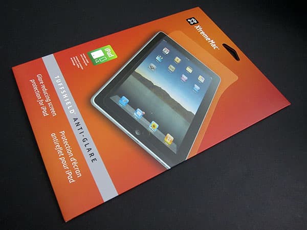 XtremeMac’s entry into the increasingly crowded iPad protective film category is Tuffshield Anti-Glare ($25), a single piece of four-layer film — Chinese-made — plus a black screen cleaning cloth, with nothing else in the package.