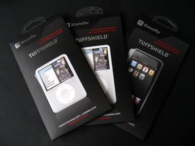 As XtremeMac’s entry in the clear film protector sector, TuffShield for iPod nano, iPod classic, and iPod touch ($15 each) each sell in three-packs: you get three sets of screen and control protectors for your iPod, plus a cleaning cloth.