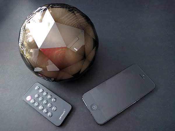 To say that Black Diamond 3 has improved as a light would be an understatement. It is now equipped with a bright 16-million color LED system that can be locked into one color, allowed to wander through different shades one at a time, or used for multi-colored static or moving lights—all closer to the company’s premium JellyWake lamps than ever before. By comparison with the Black Diamond 2 and Black Diamond Lamp implementations, which were relatively flat and rendered interesting solely because of the faceted translucent plastic, Black Diamond 3’s lighting system is entrancing: fading from color to color, or locked into one of several different scattered rainbow-style patterns, it is truly beautiful. Brightness settings on the remote let you bring the colors from richly saturated tones up to more white-tinted, subtle version that may go better with your room or mood. As a pure lamp, the only thing we could ask for from a future iteration would be even more and brighter lights, but what’s in here is pretty dazzling.