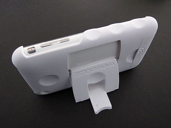 As an interesting new protective shell for the iPhone 3G and 3GS, Zero Chroma’s Projeto ($35) does three things: it covers the back and parts of the iPhone’s sides, includes an 18-position pop-out video stand that lets you ratchet your way to your preferred viewing angle, and also has a “Sound Scoop” that channels the iPhone’s bottom speaker output towards the front of the unit.