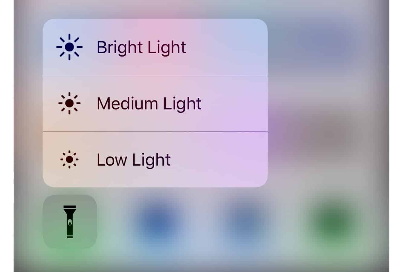 To do this, swipe from the bottom of the screen to bring up Control Center, and use a 3D Touch press on the flashlight button and you’ll get a menu with options for Bright, Medium, or Low light.