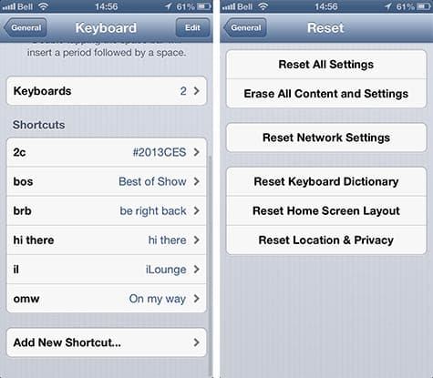 On the other hand, if your autocorrect situation is a complete mess, you can simply reset the entire keyboard dictionary by choosing the “Reset Keyboard Dictionary” option found under General, Reset in the iOS Settings app. This will erase all of the learned autocorrect entries from your device, effectively allowing you to start from scratch.