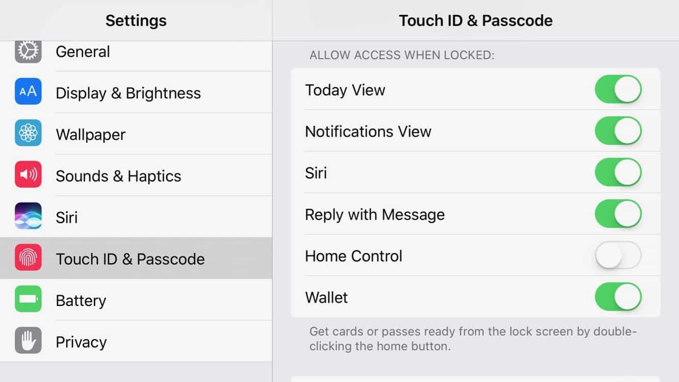 As with other Lock Screen security settings, you can find the option for this under Touch ID & Passcode in the iOS Settings app. Turning off Home Control from here will remove the Home panel from the Control Center on the Lock Screen entirely, while also requiring authentication for ALL Home-related Siri commands, similar to the way in which door lock controls always work.