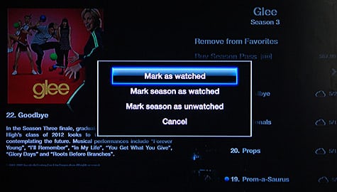 From there, you can mark the video as you see fit, and in the case of TV shows, will also have the option to mark the entire season however you want it.