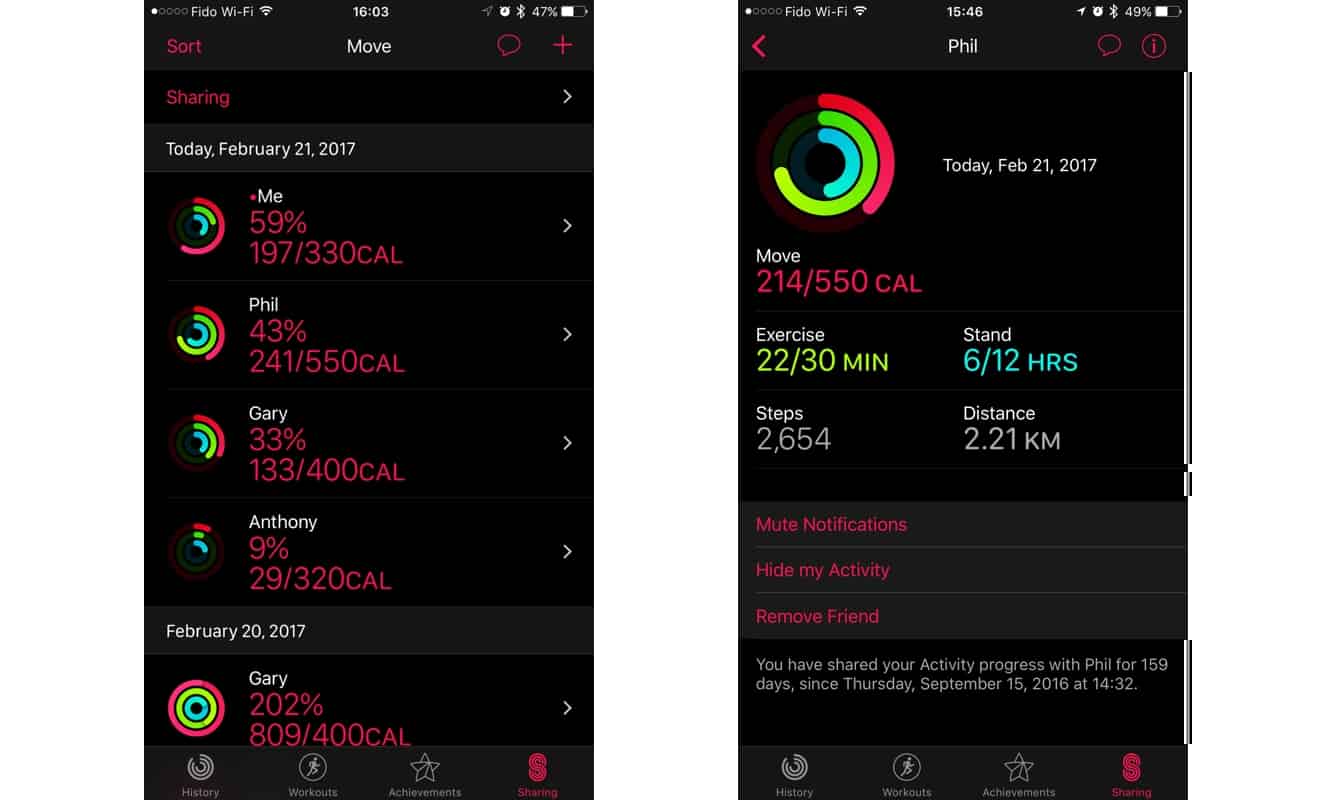 To do this, go to the Sharing tab in the Activity app on your iPhone, select the user whose notifications you’d like to mute, and tap the “Mute Notifications” button.