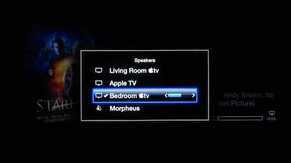 You can access and select AirPlay speakers from the Apple TV Settings menu, but there’s an even faster way to switch over to an external set of speakers when listening to audio: Simply hold down the centre “Select” key on your Apple Remote and a pop-up menu will appear with a “Speakers…” option.