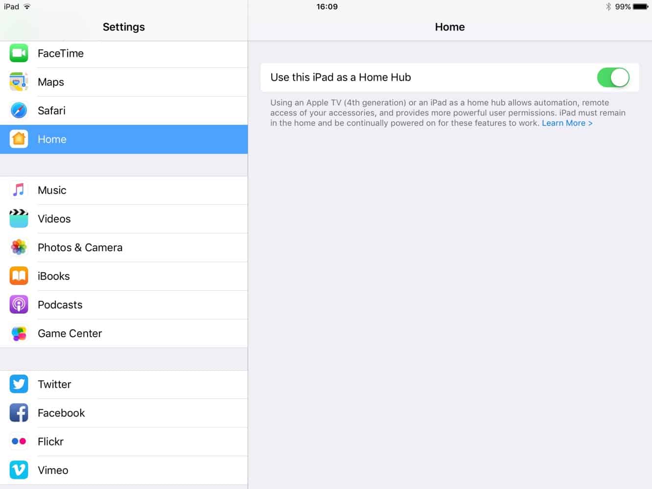 Setting this up is as simple as going into the Settings app on your iPad and switching on the option to “Use this iPad as a Home Hub.”