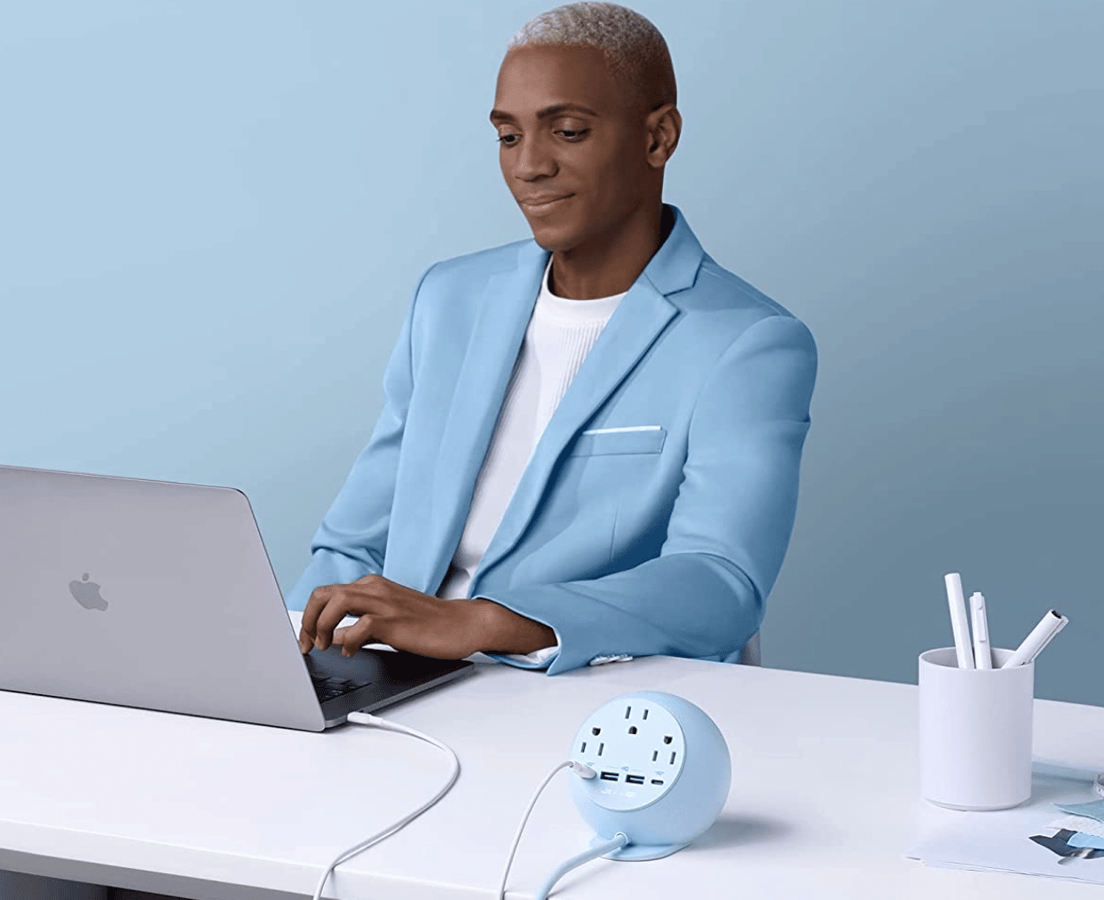 Anker sports a circular, crystal ball-like power station instead of the usual strip configuration. At the front is a wireless magnetic charging to juice up your iPhone 12, while the back has a plethora of output options, including three AC outlets, 2 USB-A ports, and two USB-C ports. The charging orb only takes roughly four inches of space and hides all the wires on the back. You can also choose from Misty Blue, Interstellar Gray, or Dolomite White.