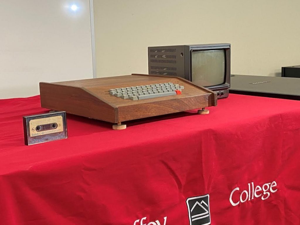 The wooden boxed computer is set to be auctioned in California. “About 200 of these were built and 175 were sold, and most of them were purchased by hobbyists,” said Steve Siedschlag, Chaffey Computer Information Systems Professor. The internals of the Apple 1 were housed in a Koa wood case.