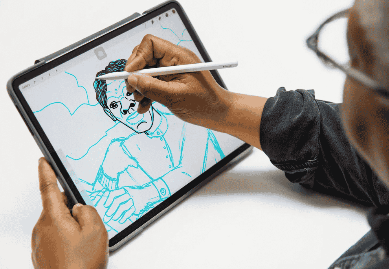 The series starts with a paper drawing before an iPad Pro and the Adobe Scan app turns it into a digital art. From there, Mance uses Adobe Fresco, Procreate and Adobe Photoshop to color the images using an Apple Pencil.
