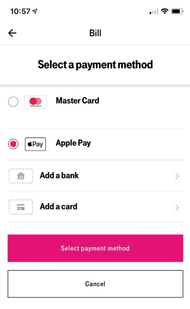 To set up Apple Pay in the T-Mobile app, the user needs to navigate to the “Bill” interface. from there they should look for the Apple Pay option. The users will then have to authenticate for any other Apple Pay purchase using Face ID or Touch ID.