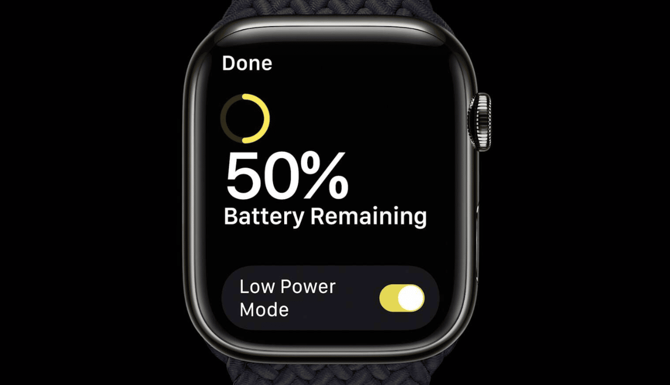 watchOS 9 users can enable Low Power by swiping up to go to the Control Center, choosing the battery percentage and turning on the option.