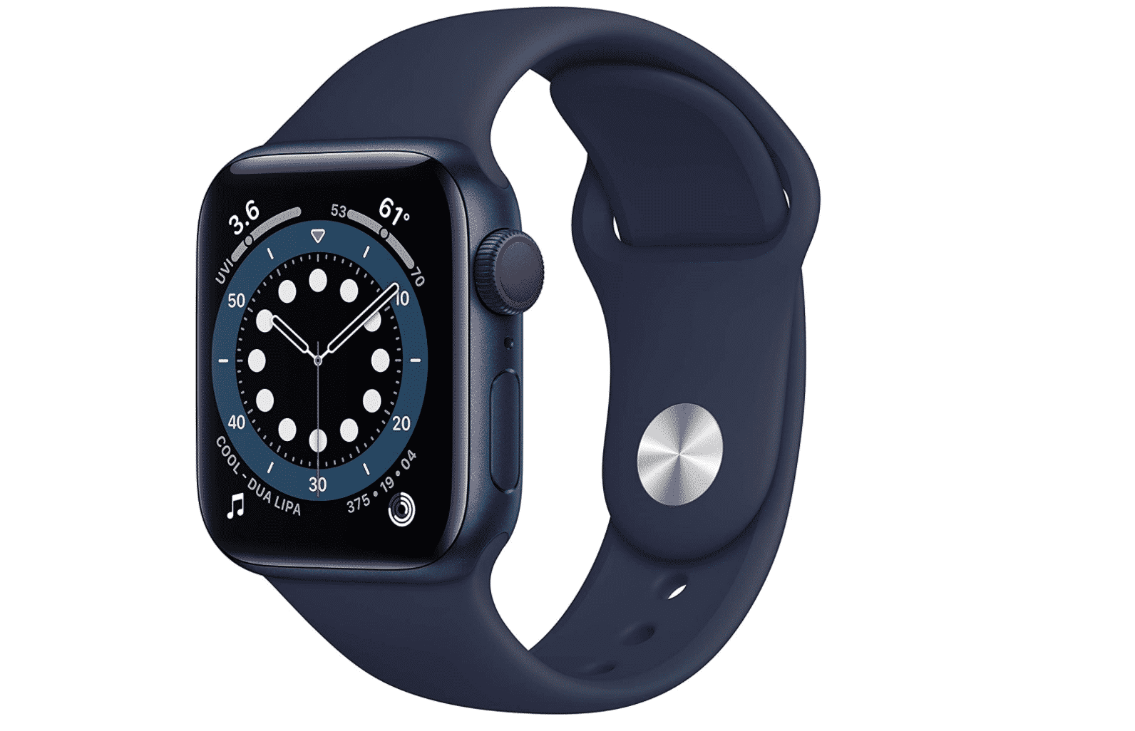 Apple Watch Series 6 (GPS + Cellular, 40mm) - Blue Aluminum Case with Deep Navy Sport Band | Buy on Amazon |