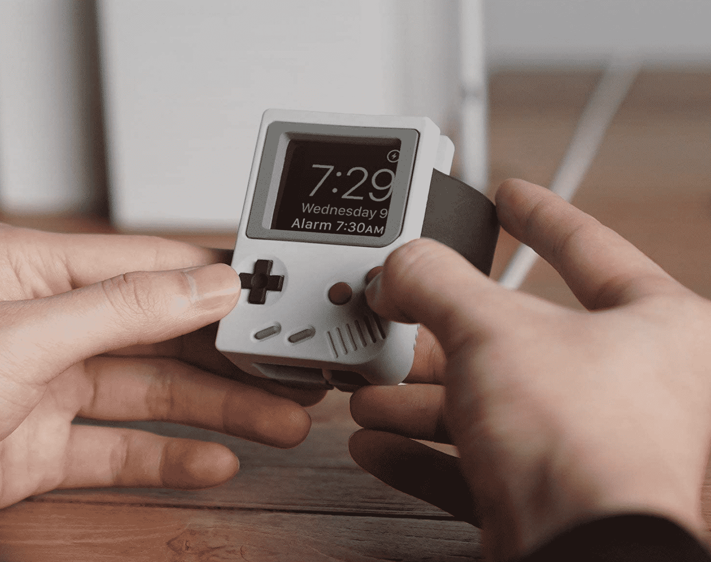 Vintage design is a blast from the past replica of Nintendo’s Game Boy. The material is scratch-free silicone which keeps your watch secure and prevents damage as you charge up the device.