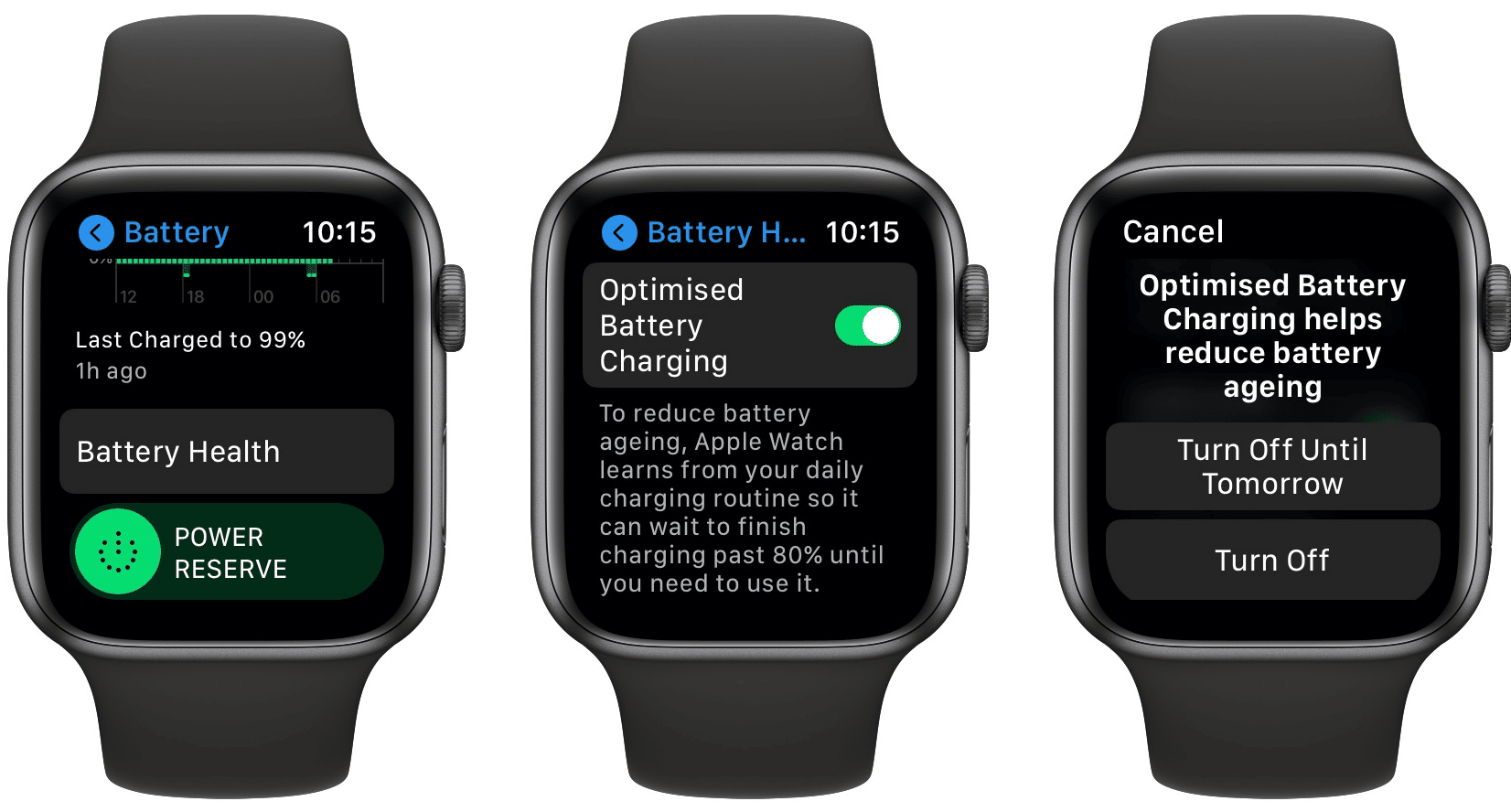 ‘Optimized Battery Charging’ can be activated by putting the device in a charger overnight. The Apple Watch will have its battery charged up to 80% at the fastest speed, then slow down and ‘float’ when the time the user usually picks up the watch arrives. Then, charging speed ramps up to 100% just before the user picks up their Apple Watch for use throughout the day.