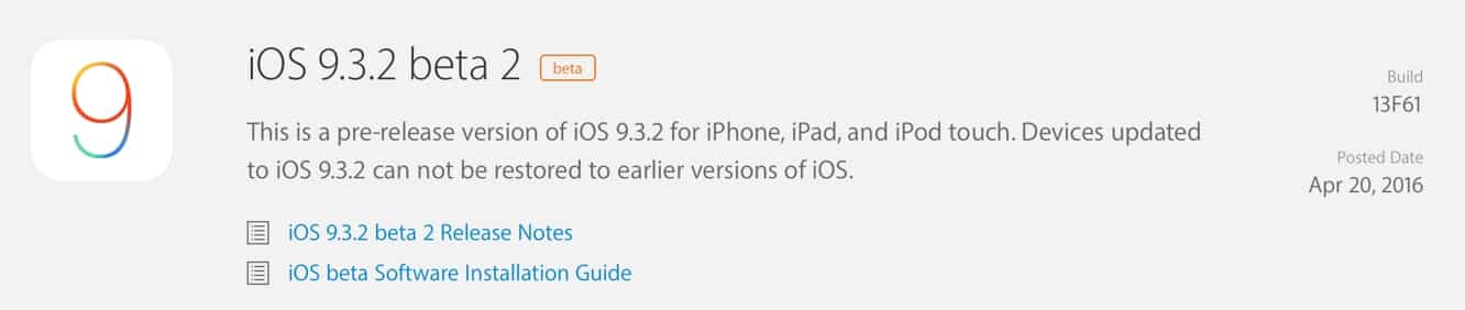 Apple releases second developer betas for iOS 9.3.2, watchOS 2.2.1