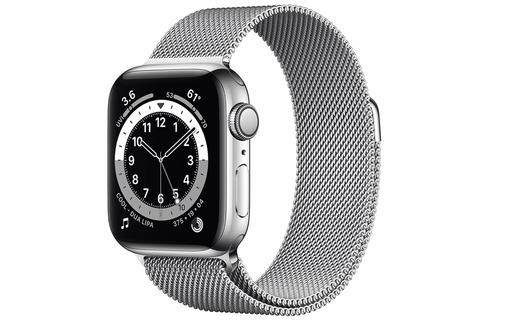 Apple Watch Series 6 (GPS + Cellular, 40mm) - Silver Stainless Steel Case with Silver Milanese Loop | Buy on Amazon |