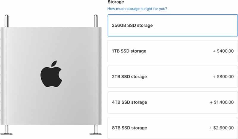 The 8TB option costs $2,600 when adding to the base model of the Mac Pro, which originally includes a 256GB storage. The previous highest upgrade was a 4TB option for $1,400.