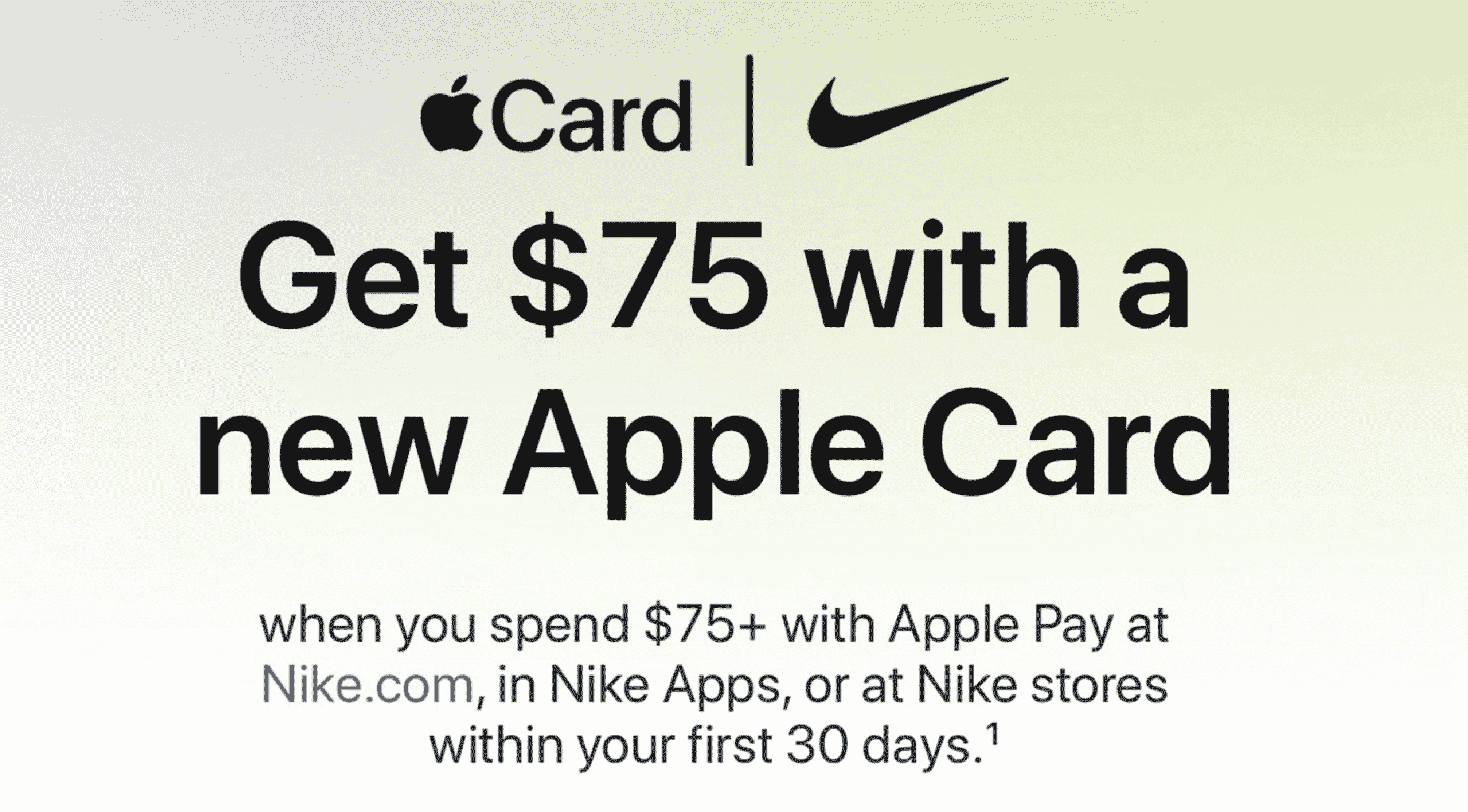 New Apple Card users can get up to $75 in daily cash back when they spend at least $75 on Nike products.