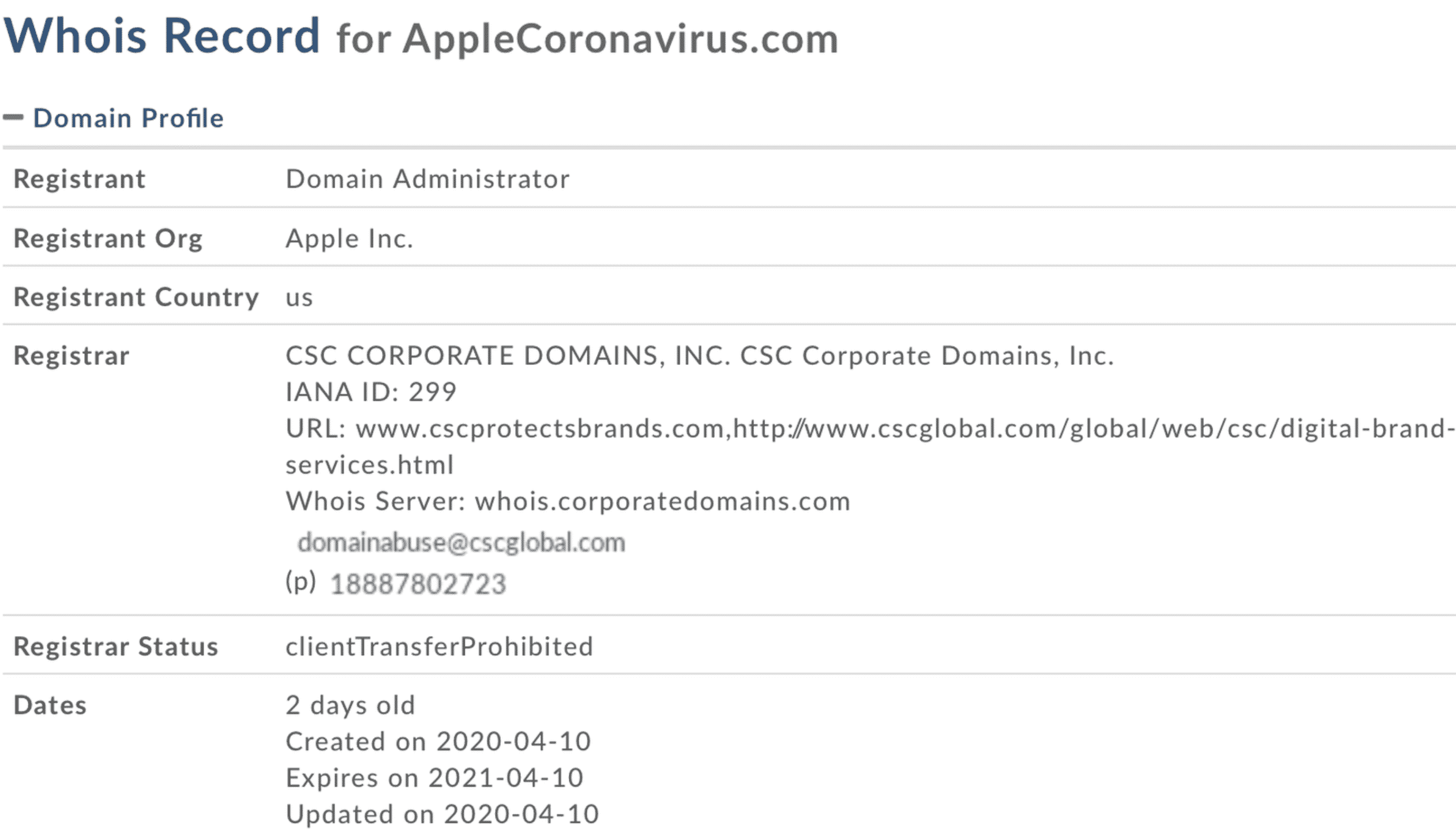 According to the WHOIS records recently Apple has registered a new domain name AppleCoronavirus.com. According to the record on WHOIS Apple retested the domain on Friday, April 10, 2020.