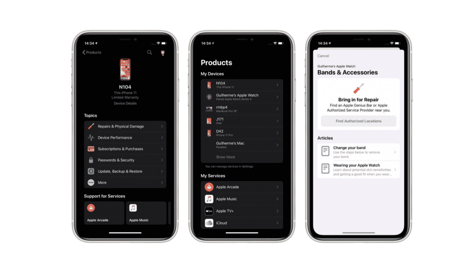 Apple has changed the user interface of the App. According to Apple, the customized new user interface will offer ease of use and smarter solutions. it also has step-by-step troubleshooting for several options along with the dark mode.