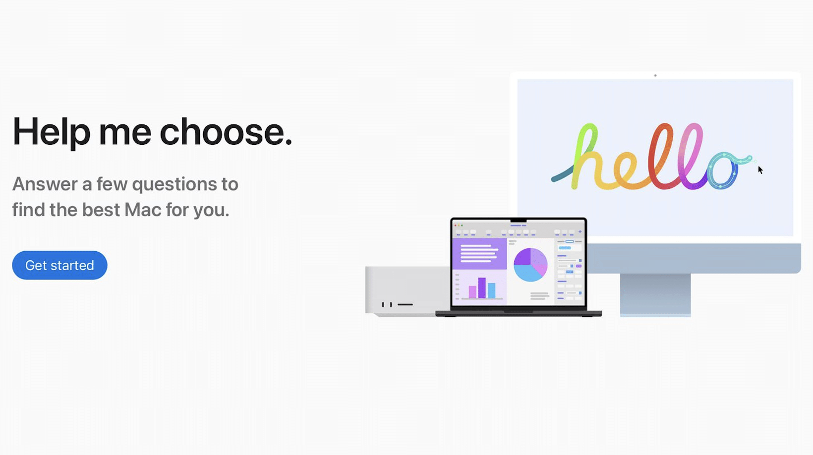 Apple’s Help Me Choose site can be found below the Mac Section of the official website. Head over to the “Compare” or “Shop Mac” option and then go to “Shopping Guides” then fill out the questions and find the Mac that best suits you.