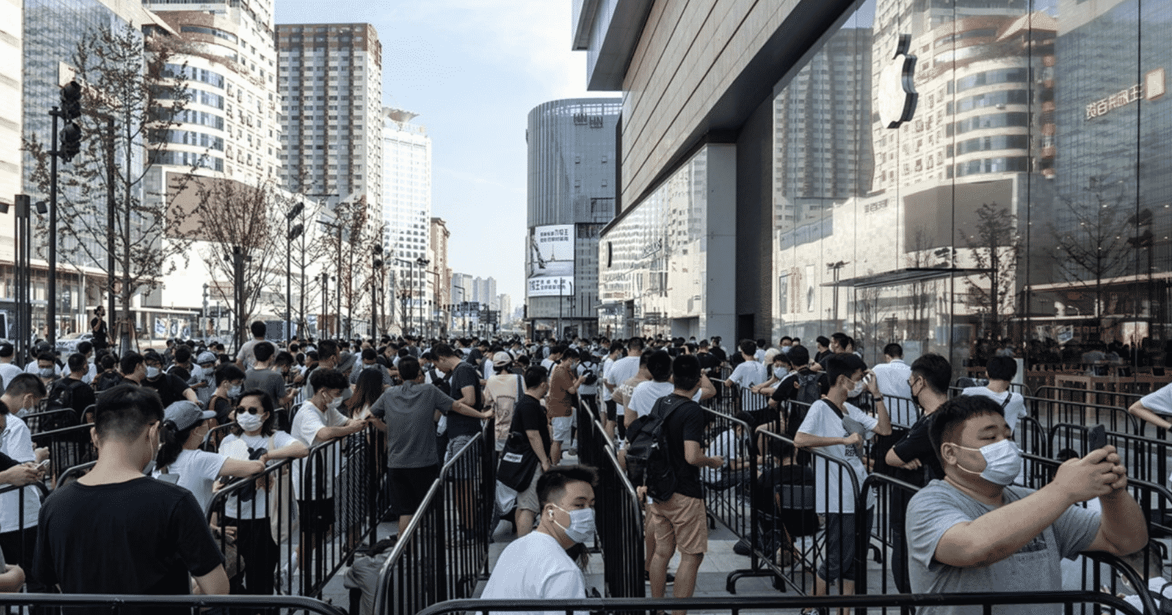 Changsha Apple Store is now open and has amassed a crowd of eager consumers.