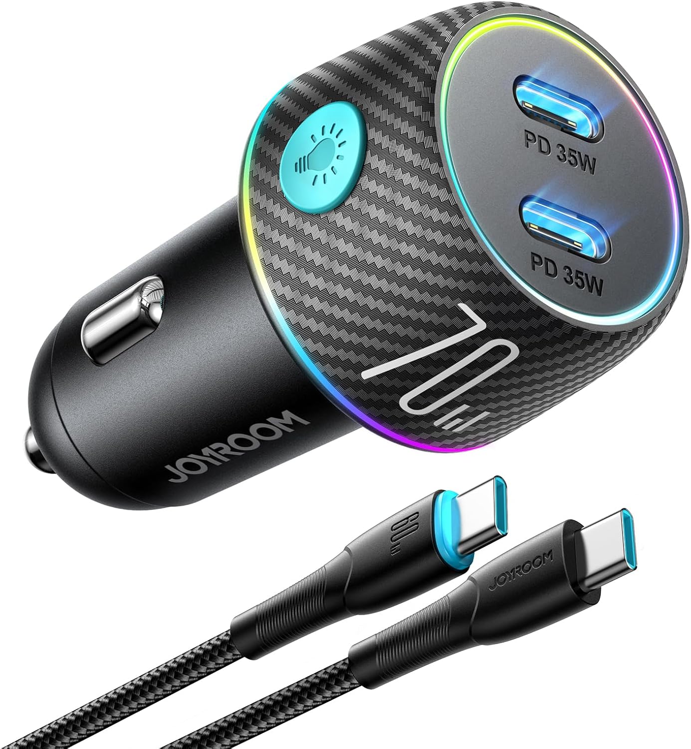 Amazon has the Joyroom Dual USB-C 70W Car Charger marked $5 off, bringing the price down to $17. The USB-C car charger lets you charge your iPhone and MacBook on the go, featuring two ports each with PD 3.0 35W of charging so you can juice up your devices at a fast speed.