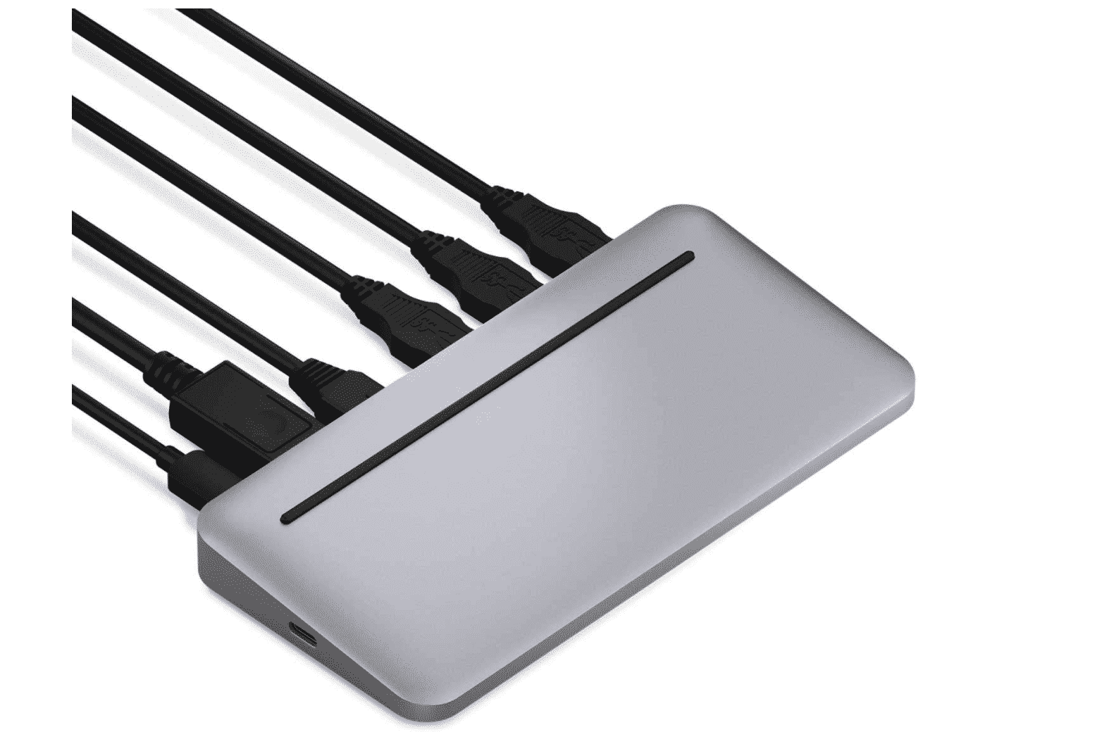 The USB-C Multiport Hub sports seven useful ports for digital audio devices, networks, hard drives and displays. It has an Ethernet, HDMI, three USB A ports and two USB C ports for all your external devices and accessories. It’s compatible with both macOS and Windows and designed to be plug-and-play.