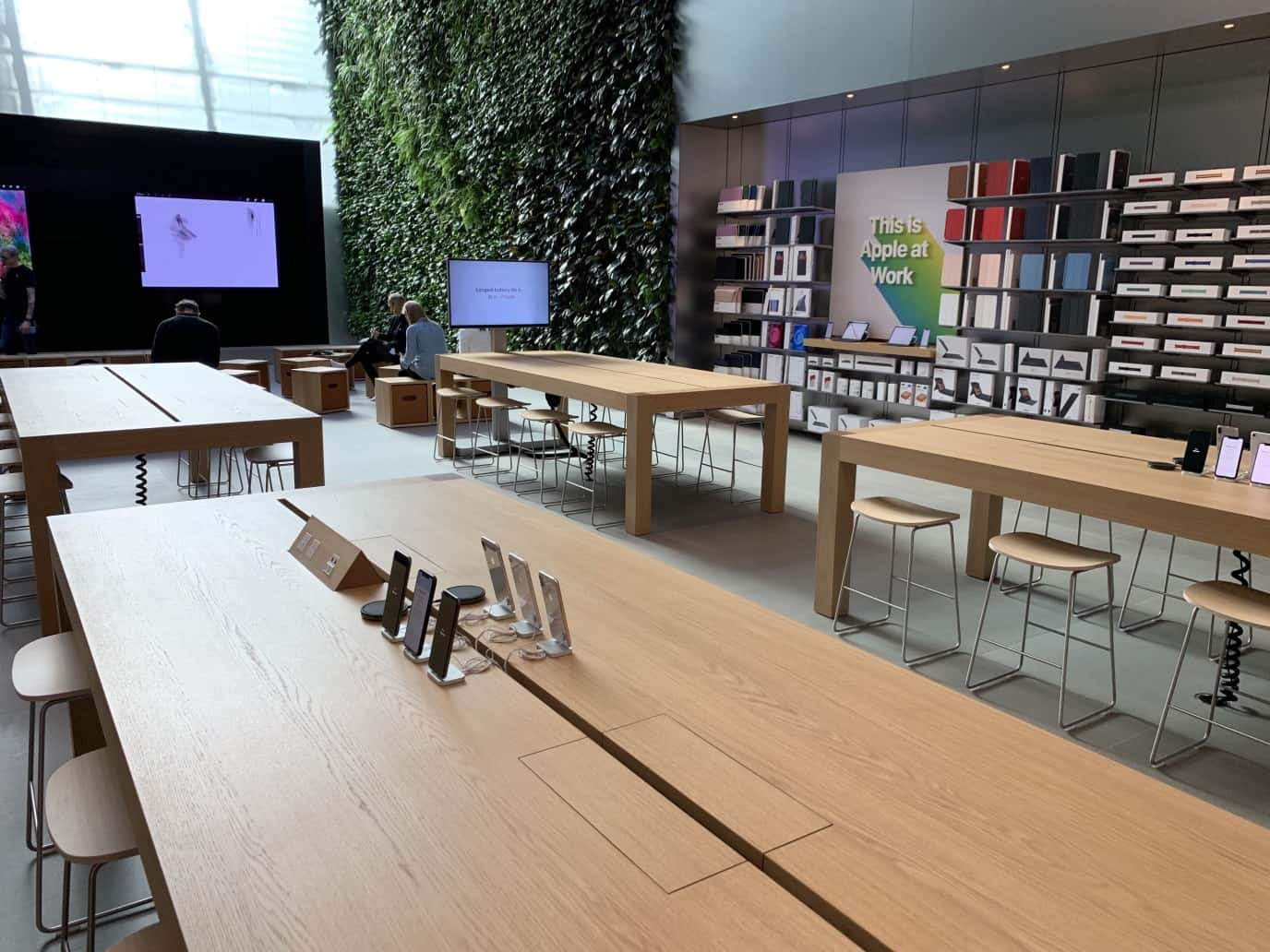In March, the store closed for renovations. People expected to see a video wall and new fixtures, but Apple opted for a more conservative look and added classic feature bays, graphic panels, and the aforementioned vertical garden.