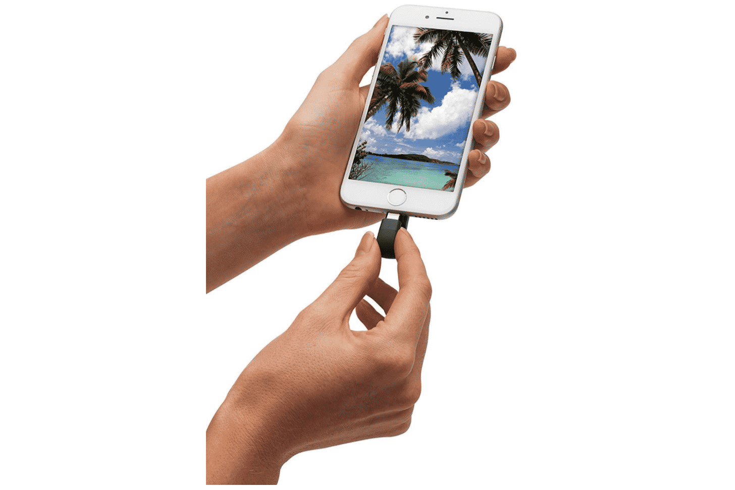 The IXpand’s flexible connector fits through most iPhone cases and supports iPhone 5 to the iPhone 6s Plus and iPhone SE, as well as iPad Mini to iPad with Retina and those with Lightning connector. Back up is automatically done from your contacts and camera app.
