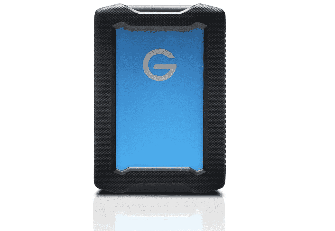 The drive measures just 5 inches by 3 inches and features a fully armored facade. It boasts an impressive 1,000 lbs crush rating and is virtually dust and rain-resistant. Furthermore, the G-Tech All-Terrain Portable Drive has a triple player shock resistance and can take a beating and a drop from three feet.