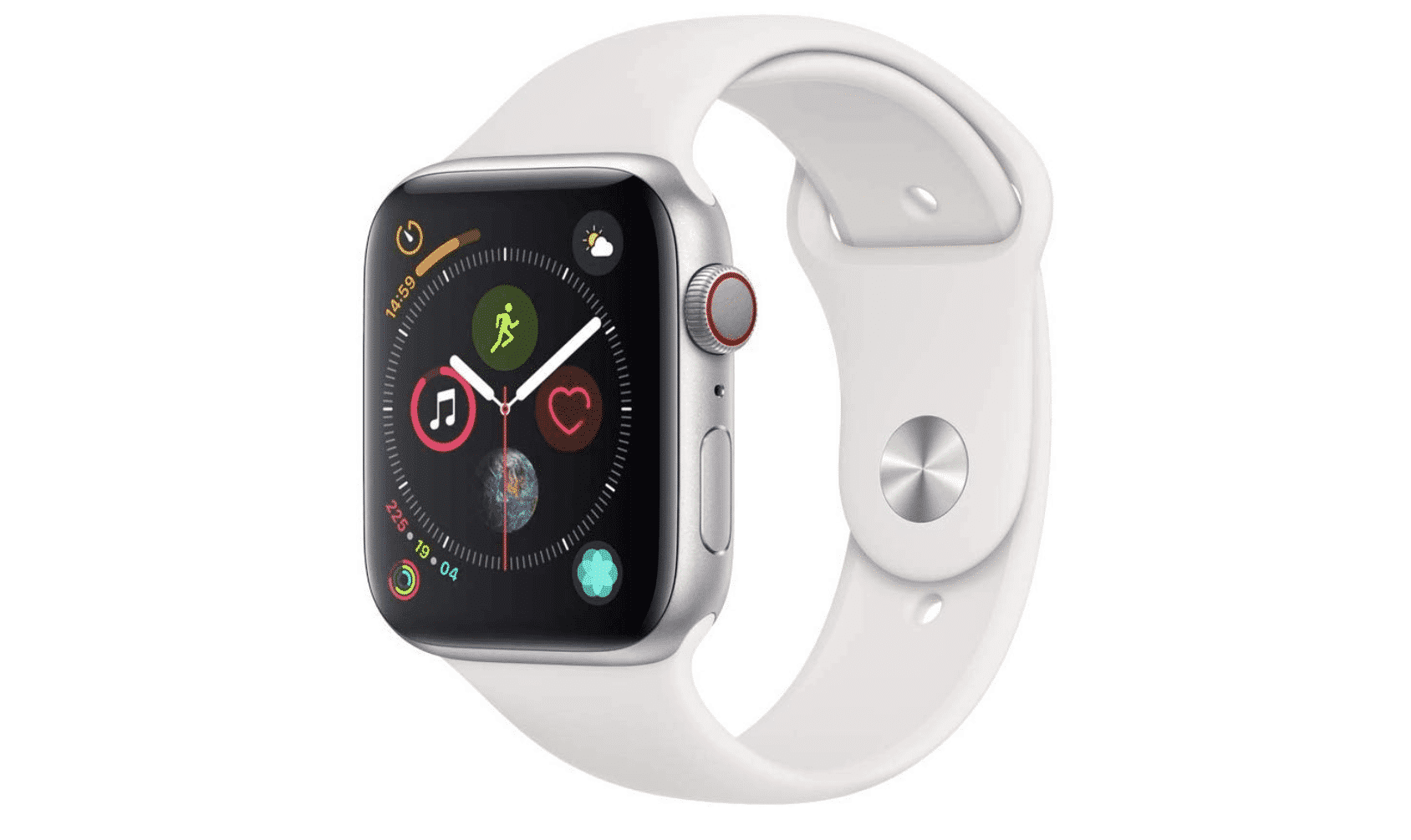 Apple Watch Series 4 (GPS + Cellular, 44mm) - Silver Aluminum Case with White Sport Band | Buy on Amazon |