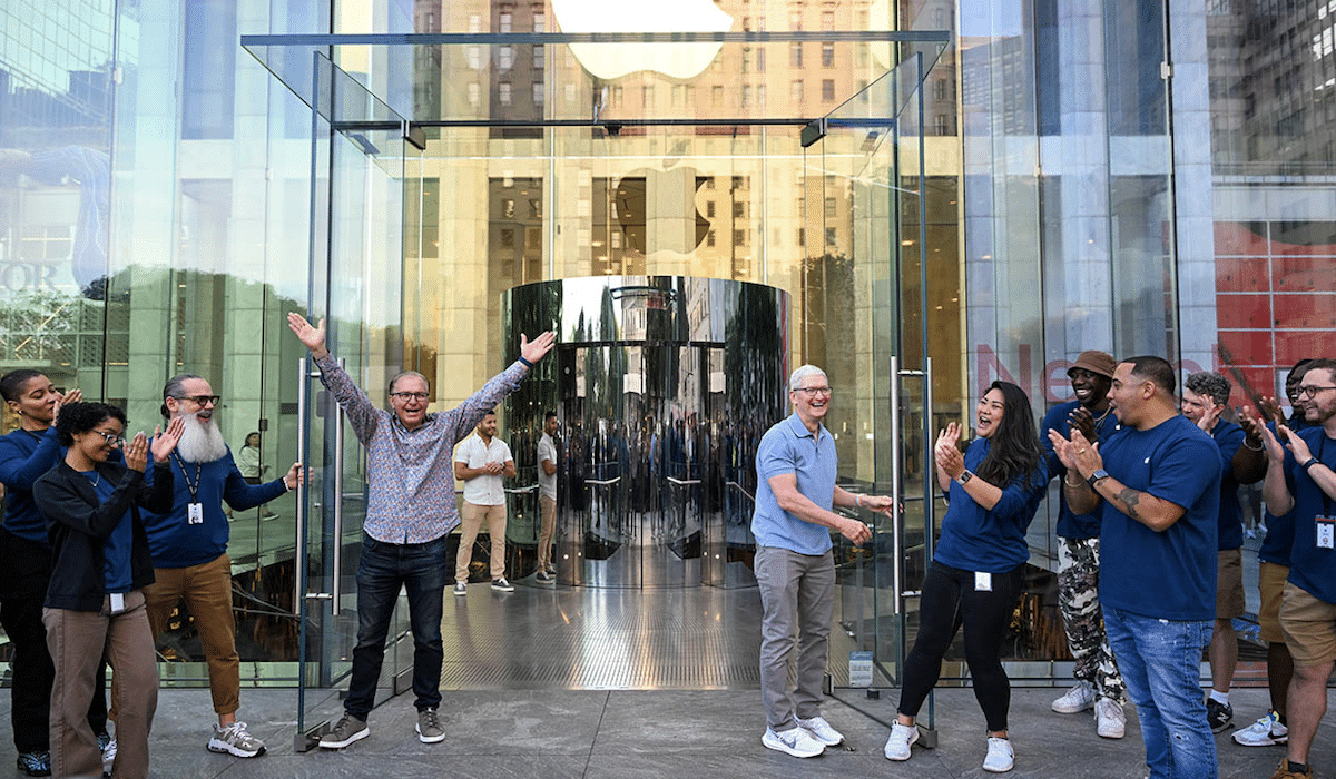 Top Apple execs Tim Cook and Greg Joswiak opened the Fifth Avenue Apple store to welcome iPhone 15 customers.