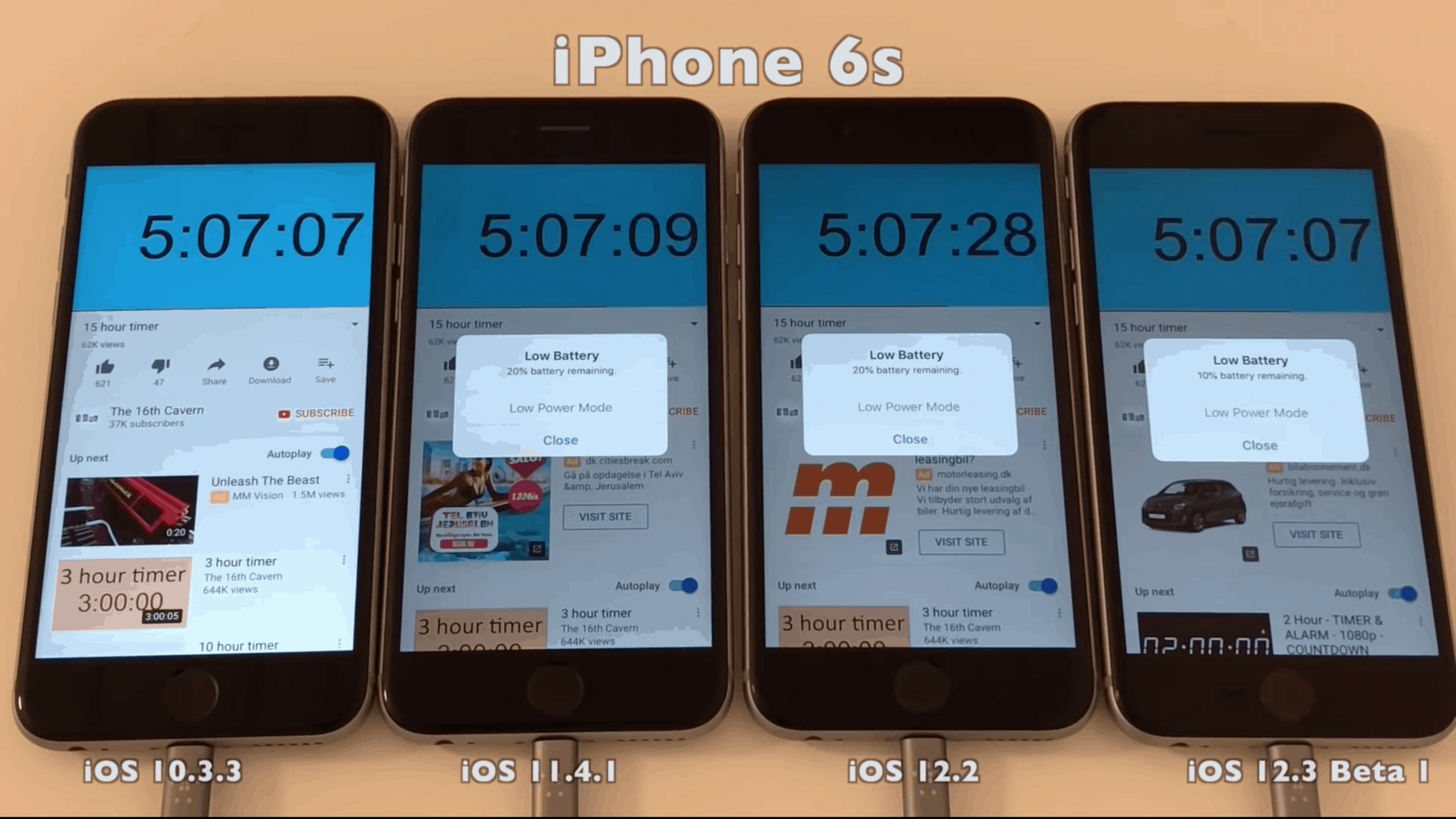 - iPhone with the iOS 12.3 Beta 1 lasted for 10 hours.