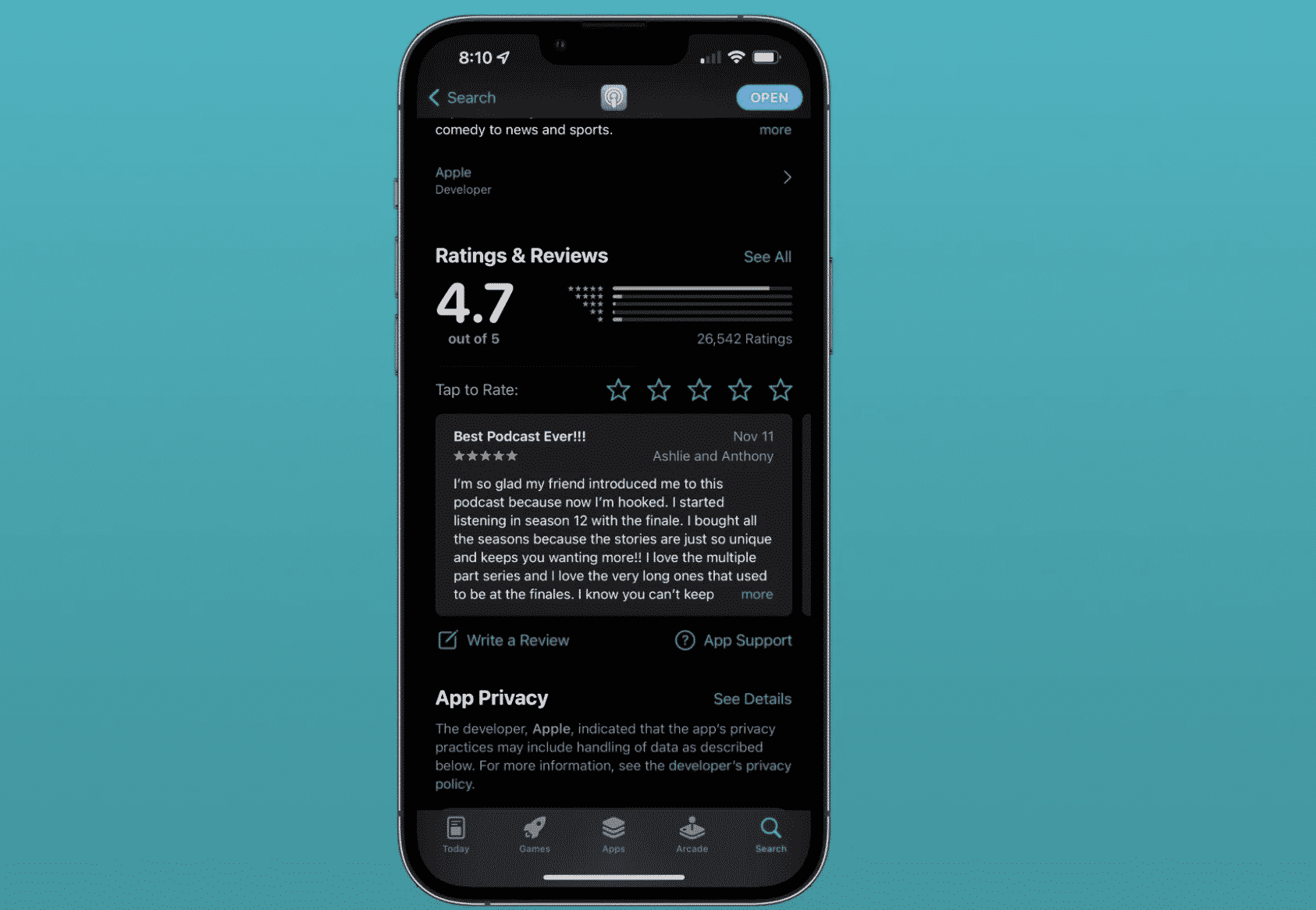 A surge in review rating for the Apple Podcasts app reveals a new implementation, particularly one that prompts users to leave a review.