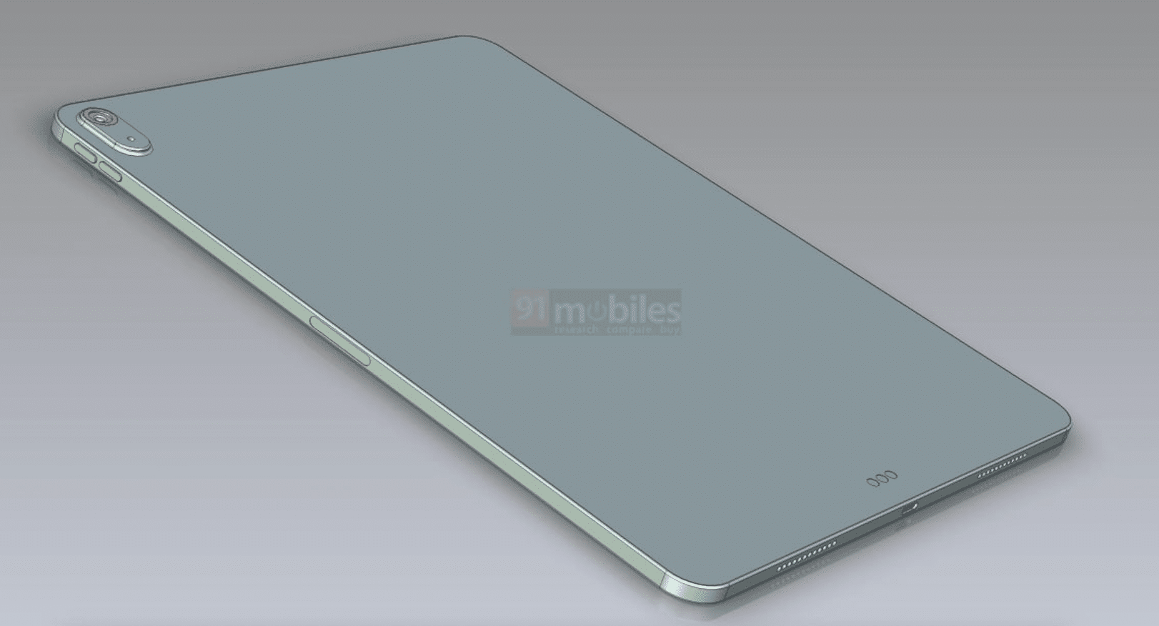 A leaker by the handle ‘91 Mobiles’ shows a look that’s nearly the same as the 4th and 5th generation iPad Air, but with bigger dimensions to accommodate the bigger screen. The CAD render highlights a redesigned rear camera lens- the pill-shaped protrusion is now longer compared to the round protrusion of the previous models. It’s believed that the design takes on an appearance similar to the iPhone XS and iPhone X.
